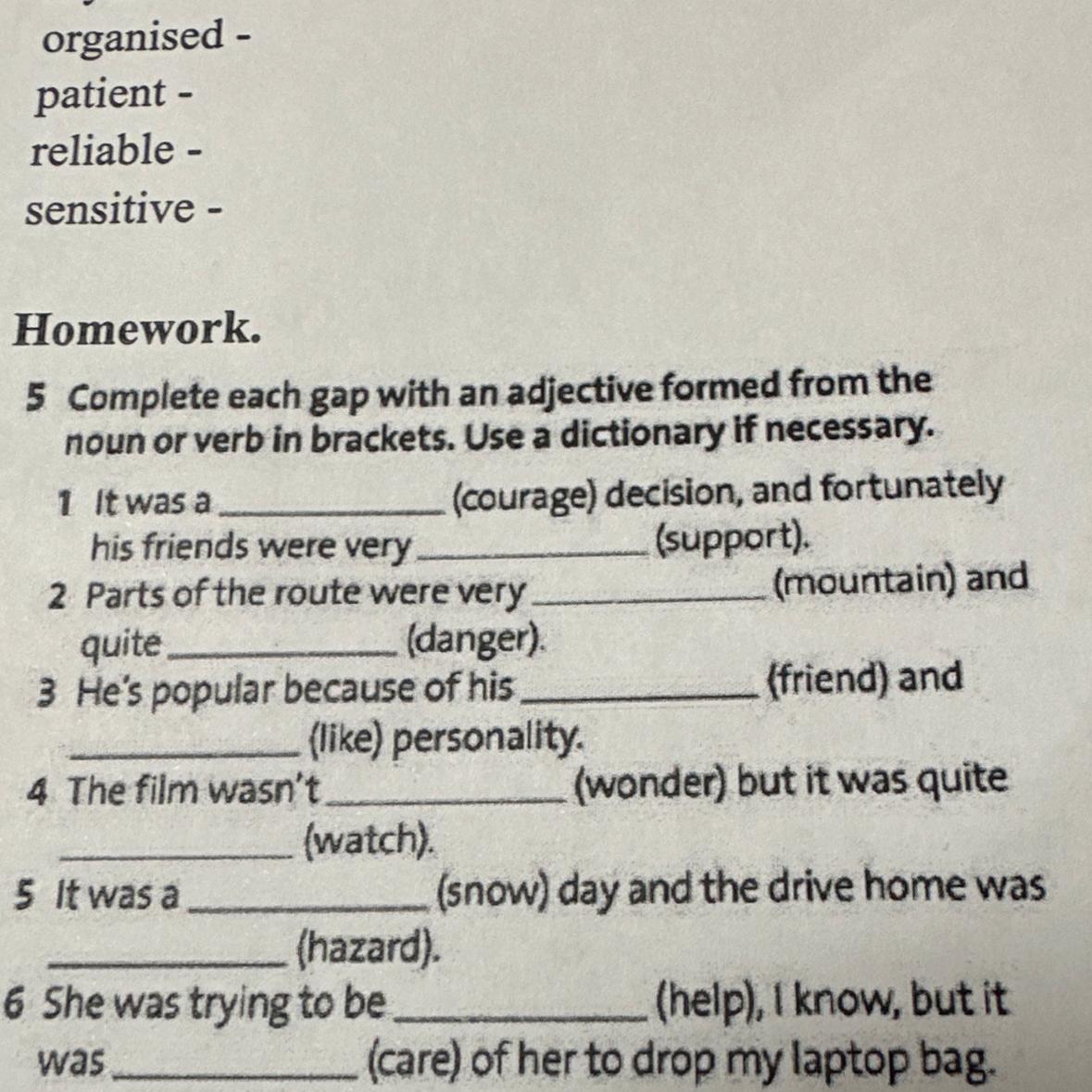 5 Complete each gap with an adjective formed from the noun or verb in brackets. Use a dictionary if necessary..