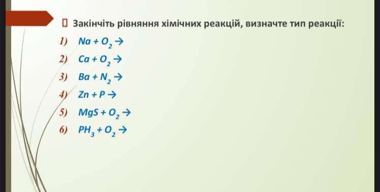 ■ Закiнчiть рiвняння хімічних реакцій, визначте тип реакції: