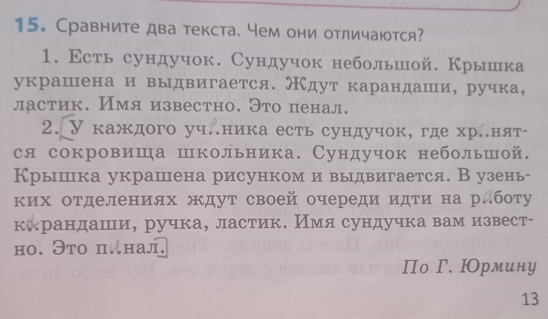 У каждого учЕника есть сундучок, где хрАнятся сокровища школьника. В узеньких отделениях ждут своей очереди идти на рАботу кАрандаши, ручка, ластик. Это пЕнал