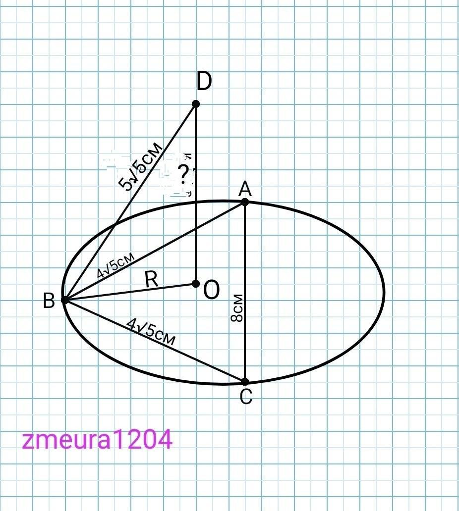 =(4√5*4√5*8)/(4*32)=640/128=5см (BO=R=5см)