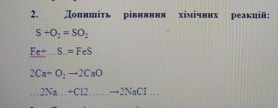 2. Fe + S → FeS (утворення сульфіду заліза)