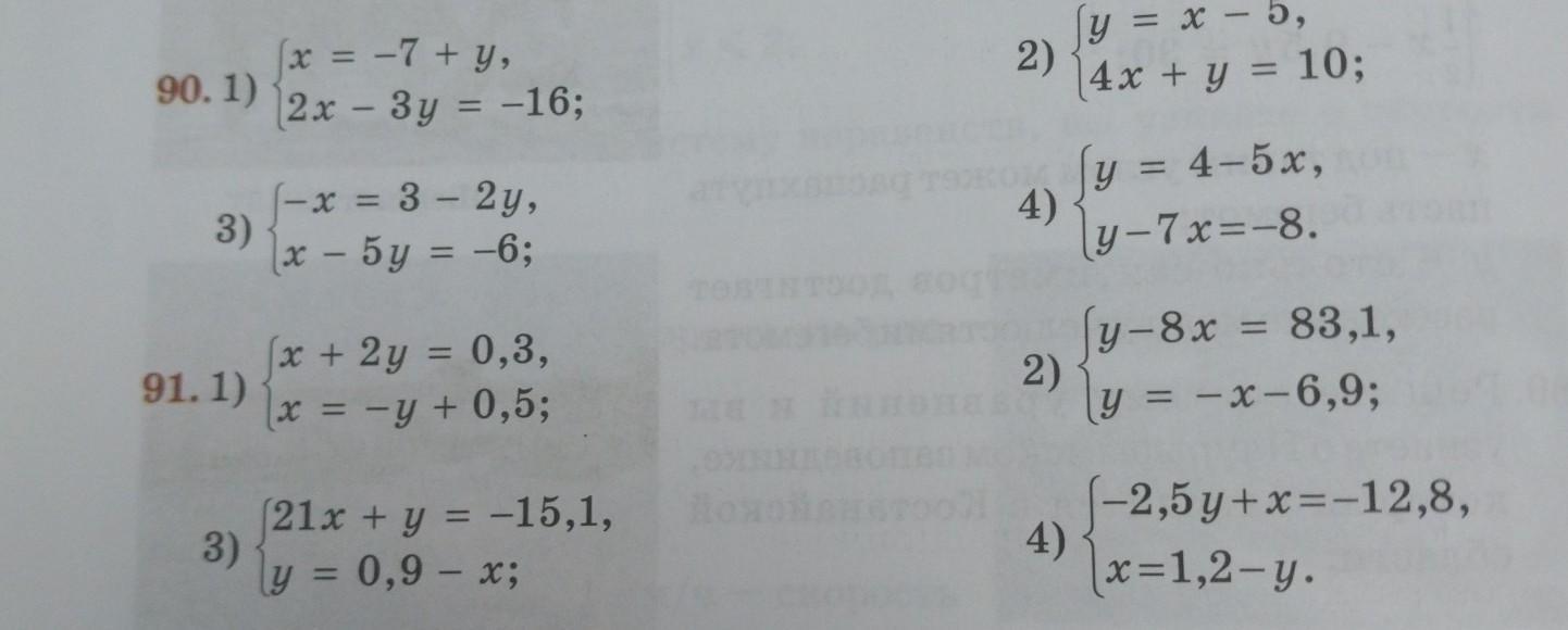 1) Из уравнения (1) получаем значение x: x = -7 + y