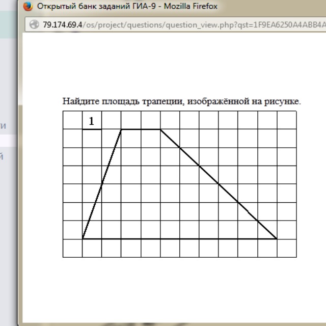 народ вы че...сказано же, что одна клетка - единица...основание верхнее = 2, нижнее 10, их половина = 6, и умножить на высоту (она равно 6) = 36...