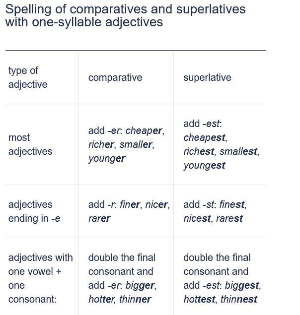 braver/richer - cheap(cheaper), big(bigger), dark(darker), nice (nicer), slim (slimmer), thin (thinner), cute (cuter).
