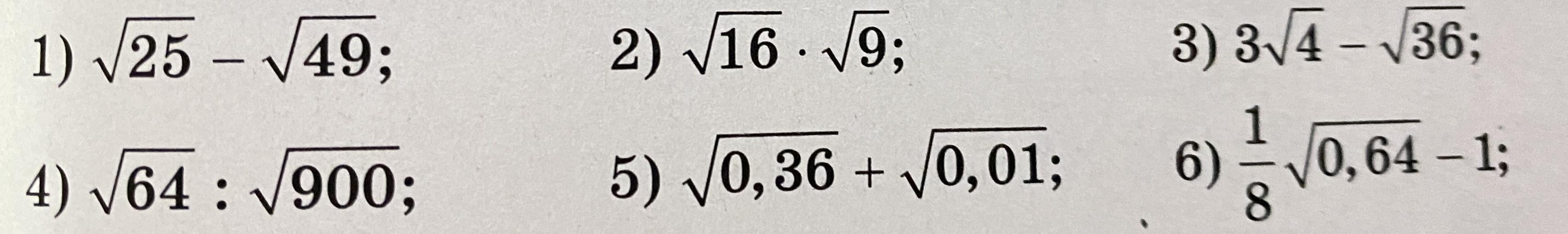 6) 1/8 √0,64-1=1,8•0,8-1=1/8•8/10-1=1/10-1= -9/10= -0,9