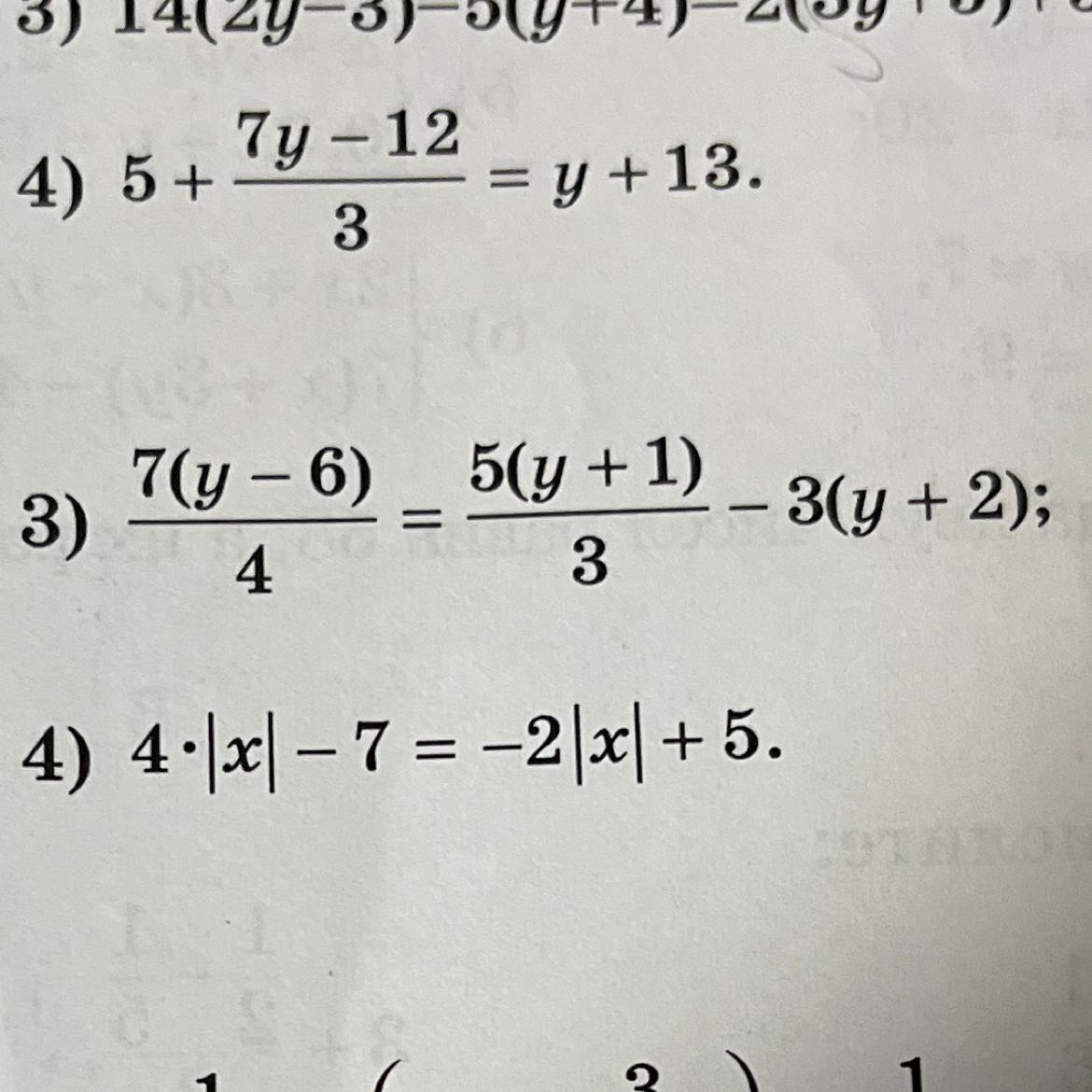 3) 7(у-6)/4 = 5(у-+1)/3- 3(у+2)