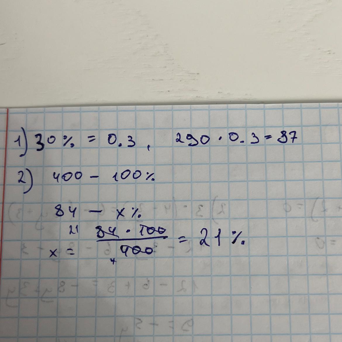 2) число 84 от 400= 21%