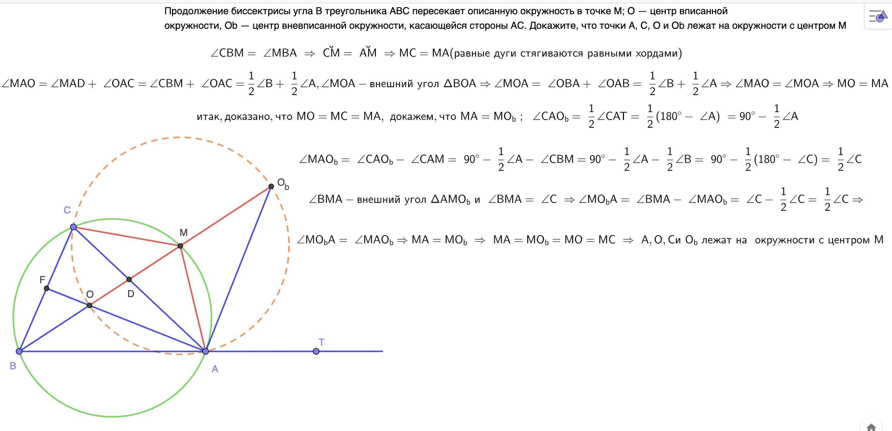 По теореме о трилистнике MC = MA = MO и по теореме Мансиона MO = MO(b) ⇒ MC = MA = MO = MO(b)