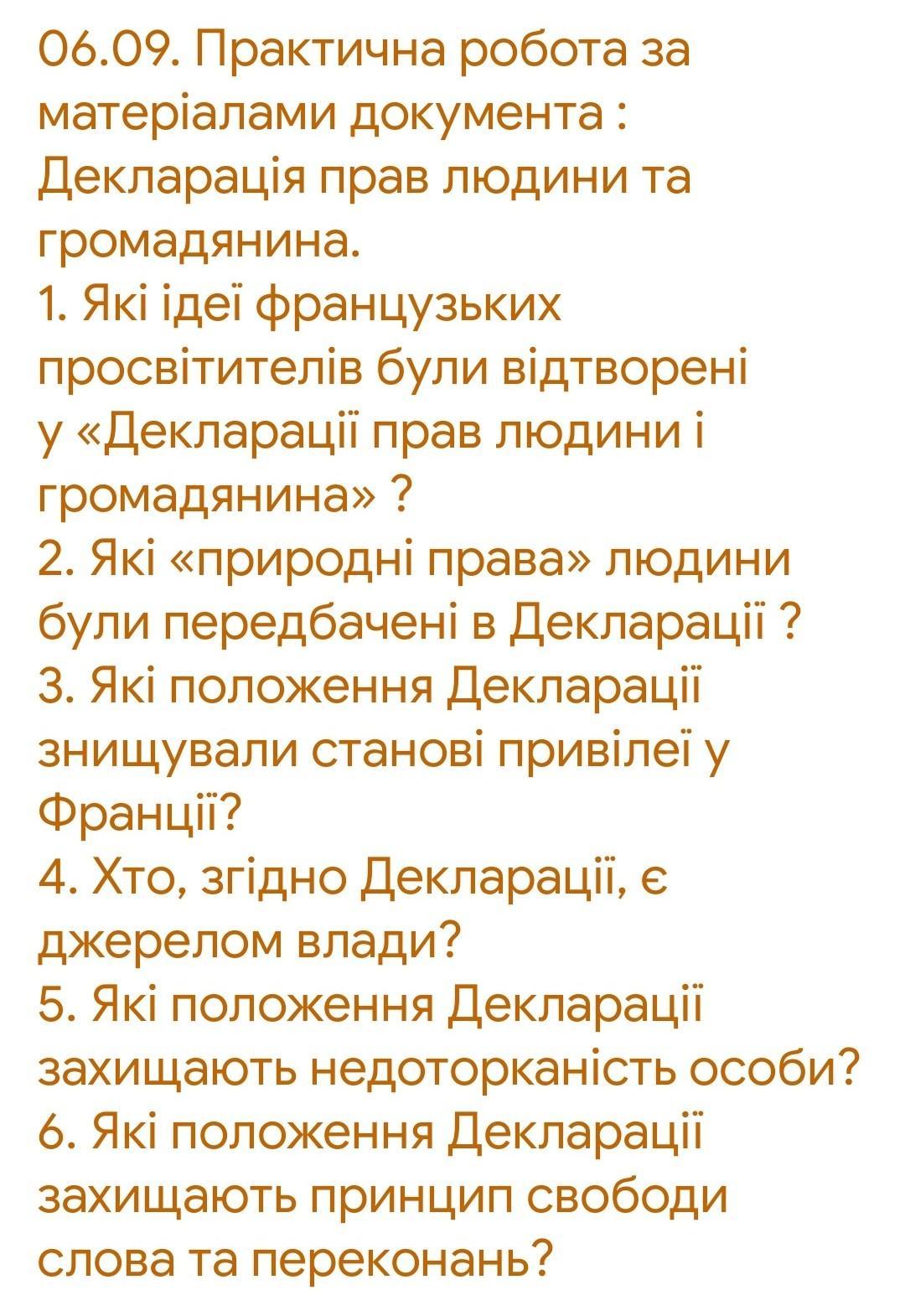 1. У "Декларації прав людини і громадянина" були відтворені ідеї французьких просвітителів, такі як ідеї Вольтера, Руссо та Монтеск'є. Ця декларація покладає основи громадянських та політичних прав людини, таких як свобода, рівність та братерство.