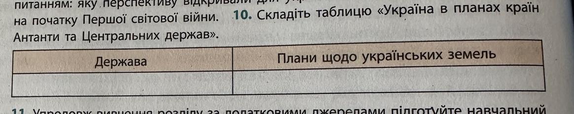 складіть таблицю «україна в планах країн Антанти та Центральних держав