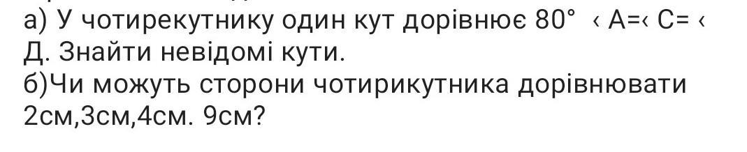 б) Ні, сторони чотирикутника не можуть дорівнювати 2см;3см;4см;9см