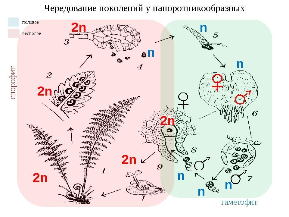 Спорофит и гаметофит два чередующихся поколения в жизненном цикле растений.