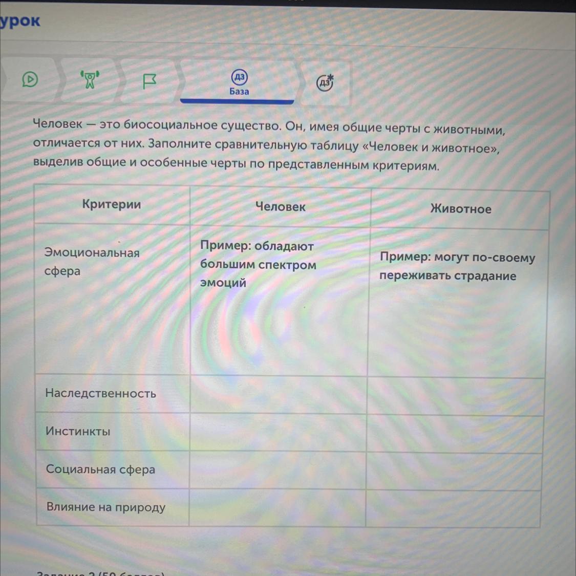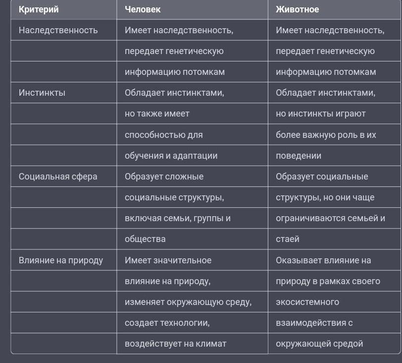отличается от них. Заполните сравнительную таблицу «Человек и животное»,