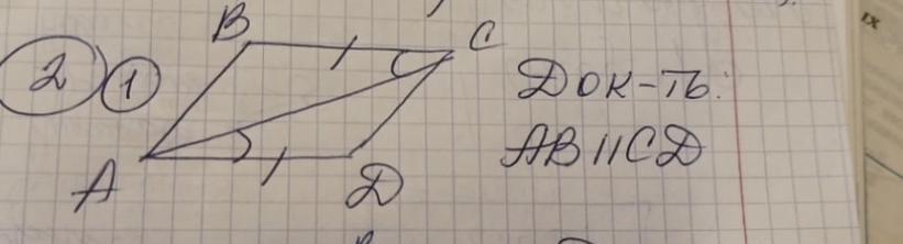 Угол А = Угол С, как накрест лежащие углы при параллельных прямых. Из этого: в треугольнике АСD угол А = угол С, как внутренние односторонние углы и в треугольнике АBC угол А = угол С, как внутренние односторонние углы, значит угол А = угол С; ∆ АВС= ∆АСD.