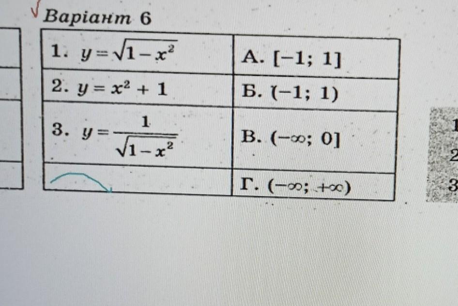 Установіть відповідність між функцією, заданою формулою (1-3), та 1 областю визначення (А-Г).