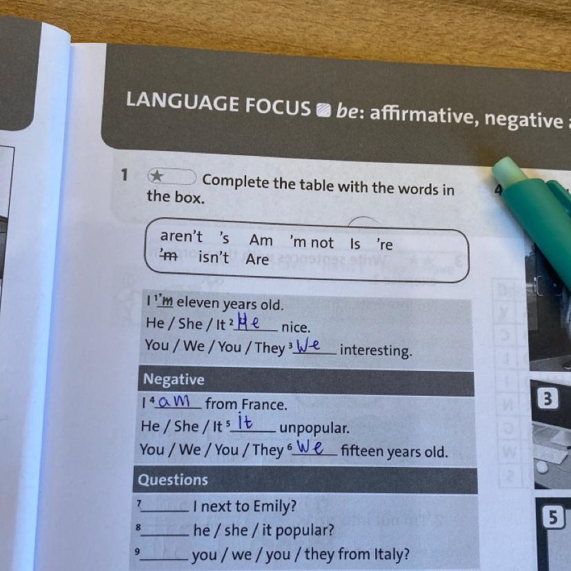 LANGUAGE FOCUS be: affirmative, negative, questions.