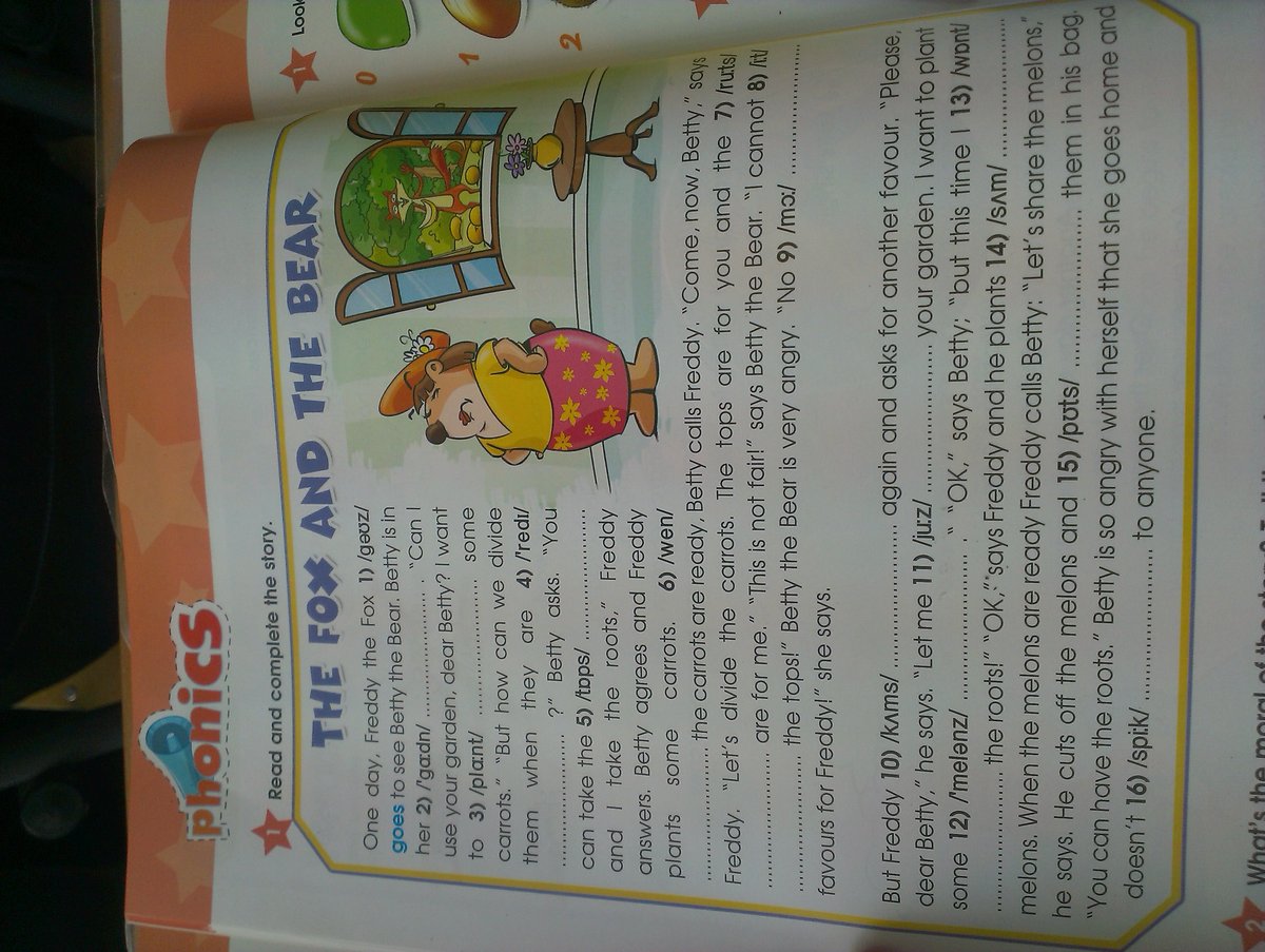 Однажды , Фреди -лиса пошла встретиться с медведем-Бетти. Бетти в ее саду :"могу ли я воспользоваться твоим садом, дорогая Бетти?я хочу вырастить немного морковки" но как мы ее разделим, когда она созреет? Спросила Бетти. Ты можешь взять верхнюю частьа я корни. Фреди ответила. Бетти согласилась и Фредди выращивает морковь. Когда она выросла, Бетти позвонил Фреди :" прийди сейчас, Бетти" сказал Фредди. "Начнем делить морковь. Верхушки тебе , а корни мне. "Это не справедливо" сказала Бетти. Бетти очень злая. "Нет, моя польза для Фреди, сказала она .