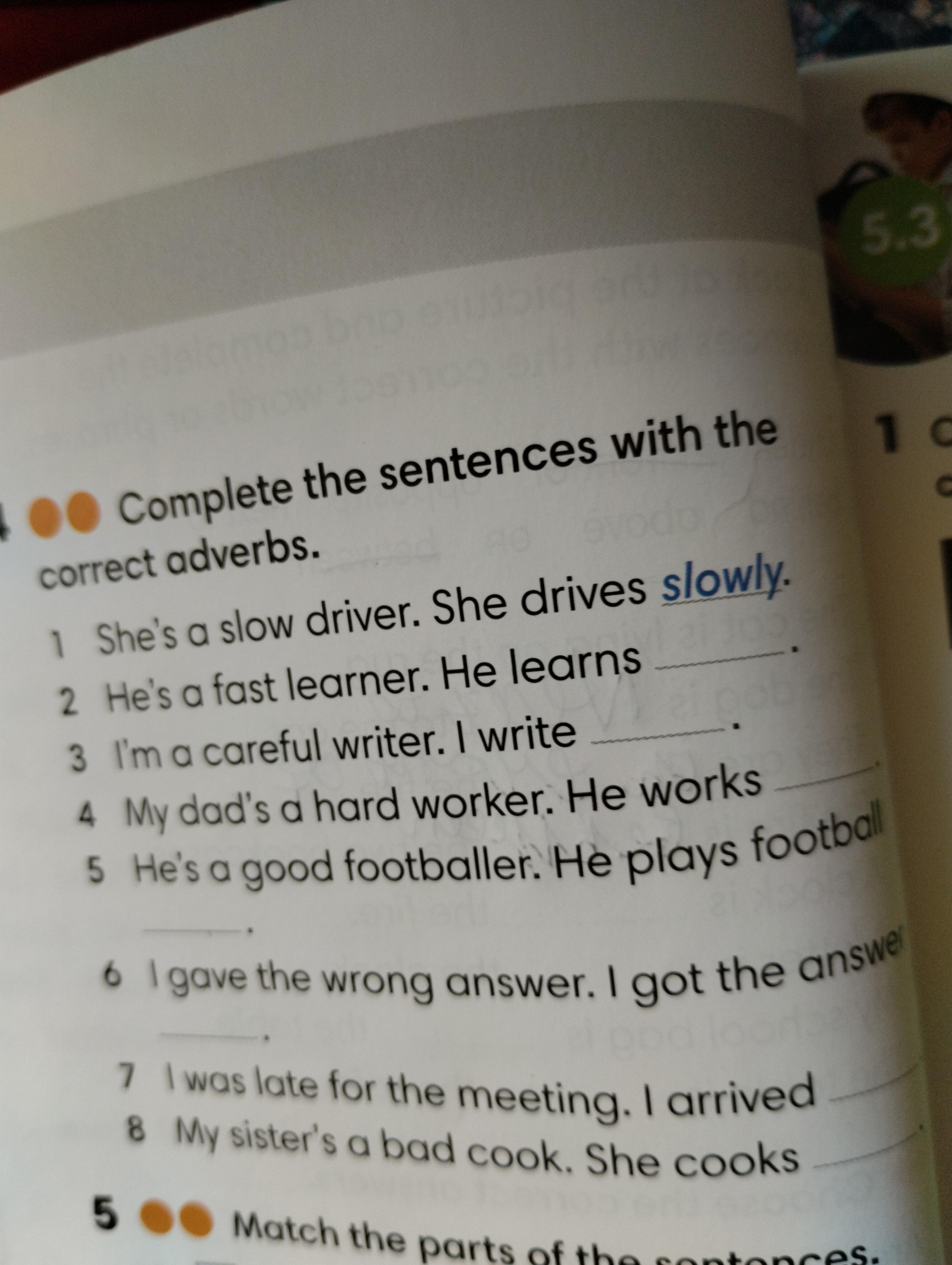 Ответ: 2.quickly, 3.carefully, 4.hardly, 5.well, 6.wrongly, 7.lately, 8.badly.