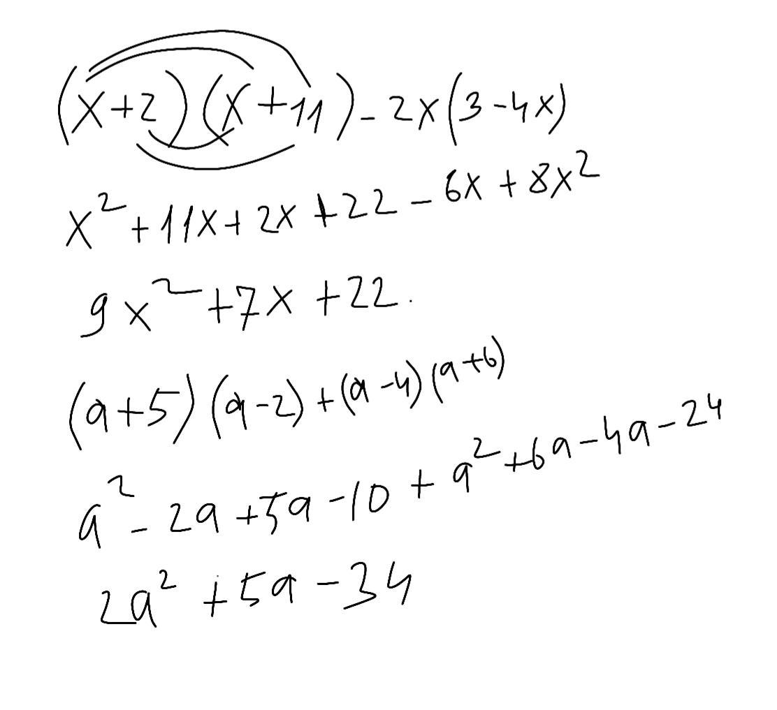 2) (а+5)(а-2)+(а-4)(а+6)=а²+5а-2а-10+а²+6а-4а-24=2а²+5а-34