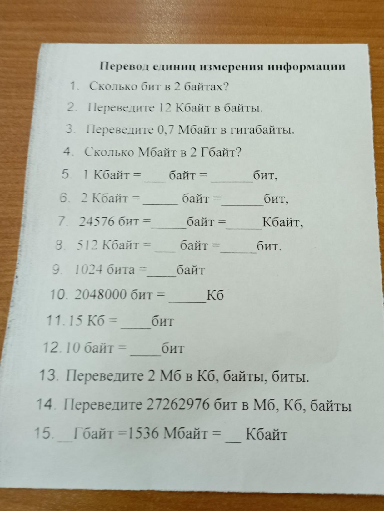 15. 1.5 Гбайт = 1 536 Мбайт = 1 572 864 Кбайт
