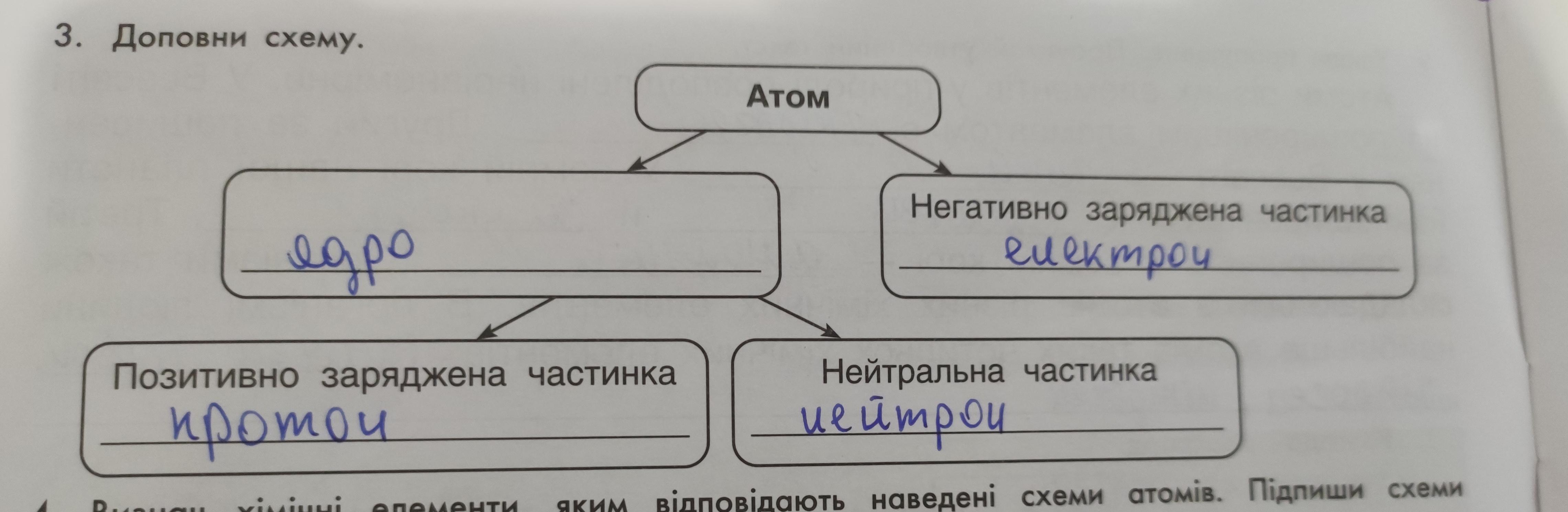 3. Доповни схему. Позитивно заряджена частинка RICHM Атом Негативно заряджена частинка Нейтральна частинка вiдповiдають новелені CYOI 7. В Е . даю 58 балов срочно пожалуйста ...
