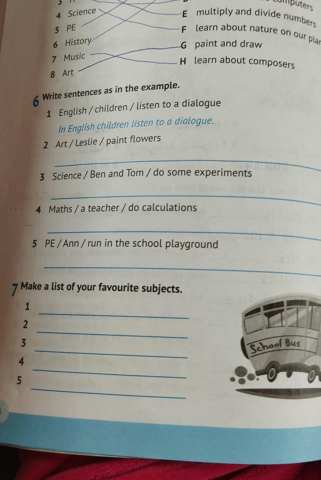 в седьмом задании сказано написать 5 любимых предметов если хочешь можешь написать свои предметы