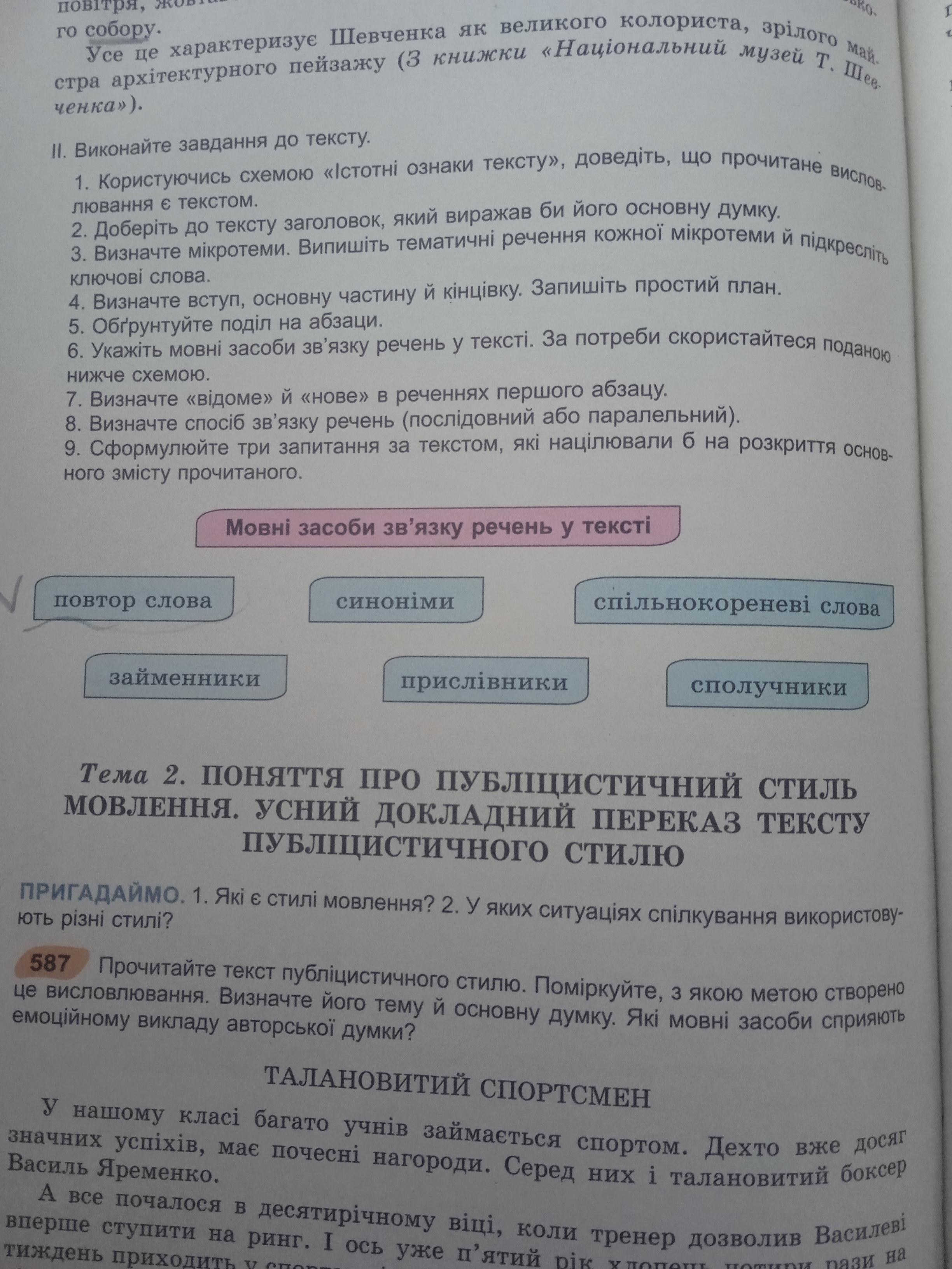 Українська мова 7 клас підручник О.ВЗаболотний ст.211 Текст Шевченко- Художник завдання 6:укажіть мовні засоби зв'язку речень у тексті.За потреби скористатися поданою нижче схемою