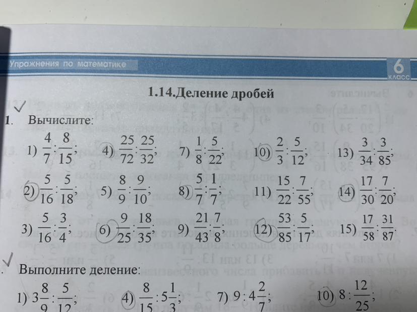 - 1)4/7 : 8/15 = 4/7 : 15/8 = 15/14 = 1 1/14