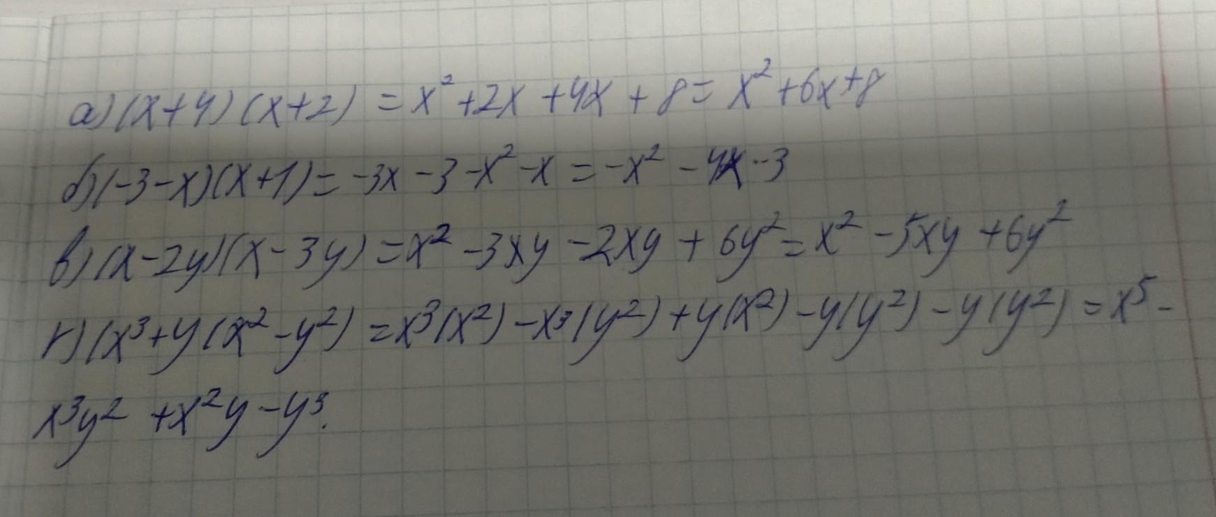 2. Виконай множення многочленів. a) (x + 4)(x + 2);