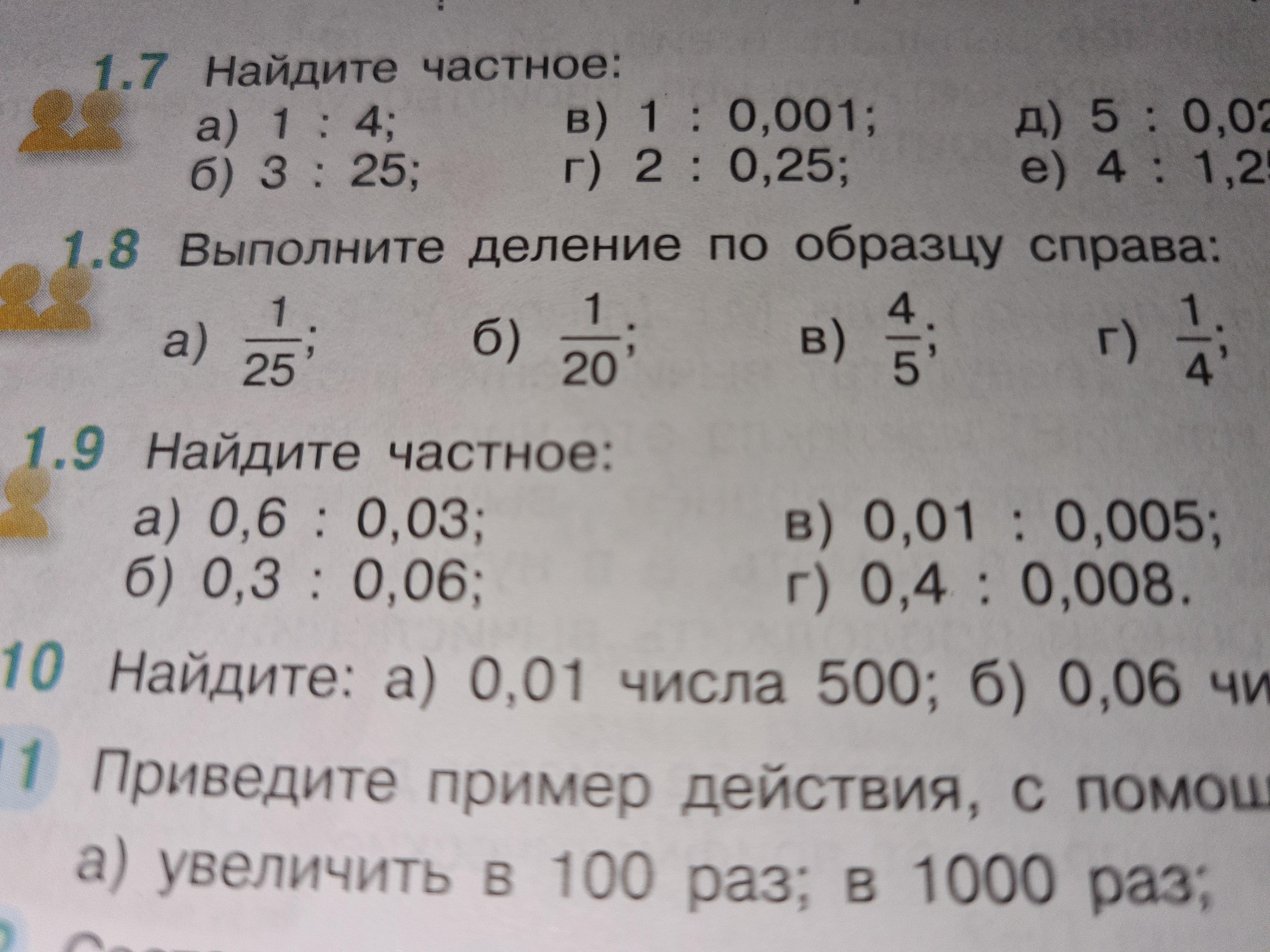 а) 0,6 : 0,03 = 60 : 3 = 20