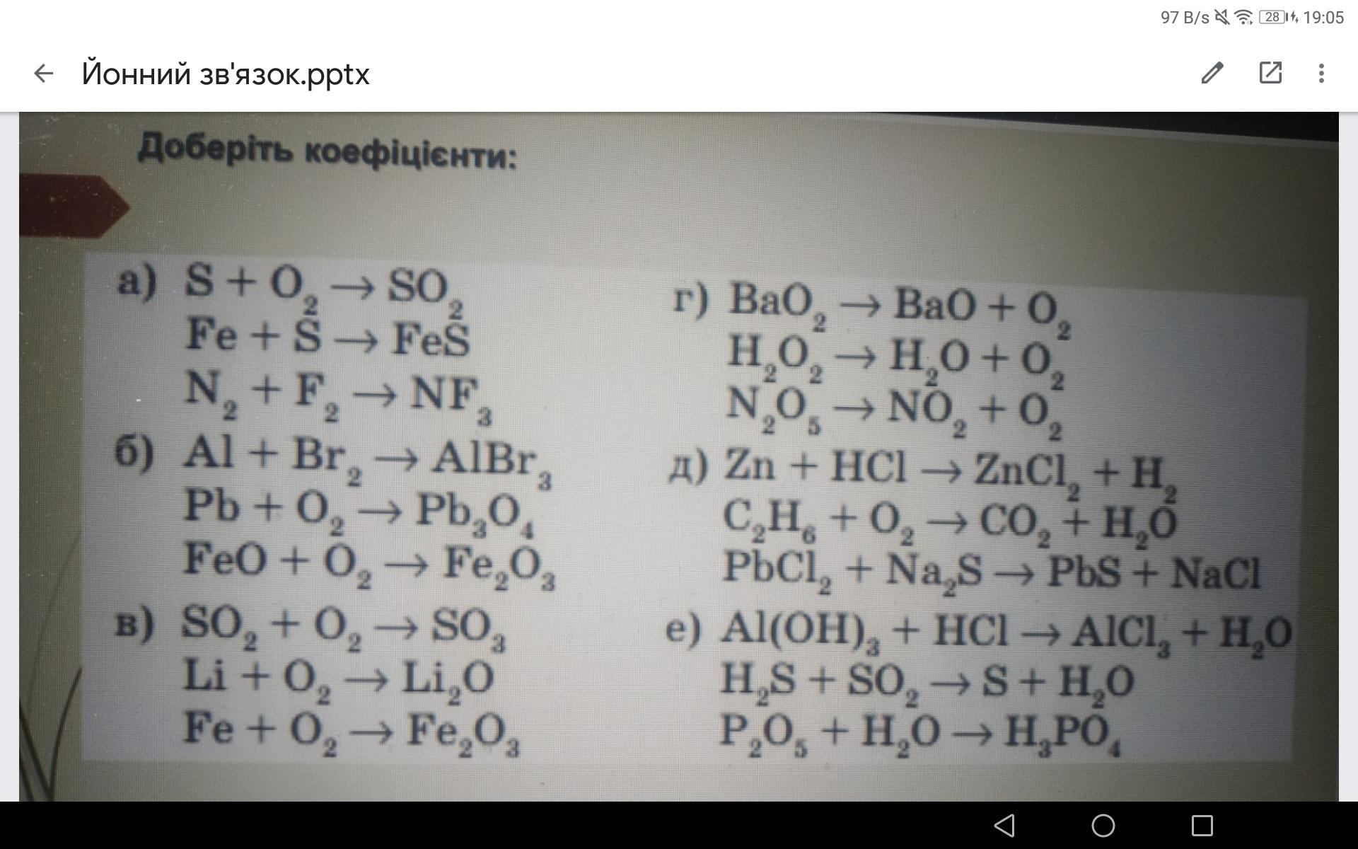 е) Al(OH)3 + 3HCl = AlCl3 + 3H2O