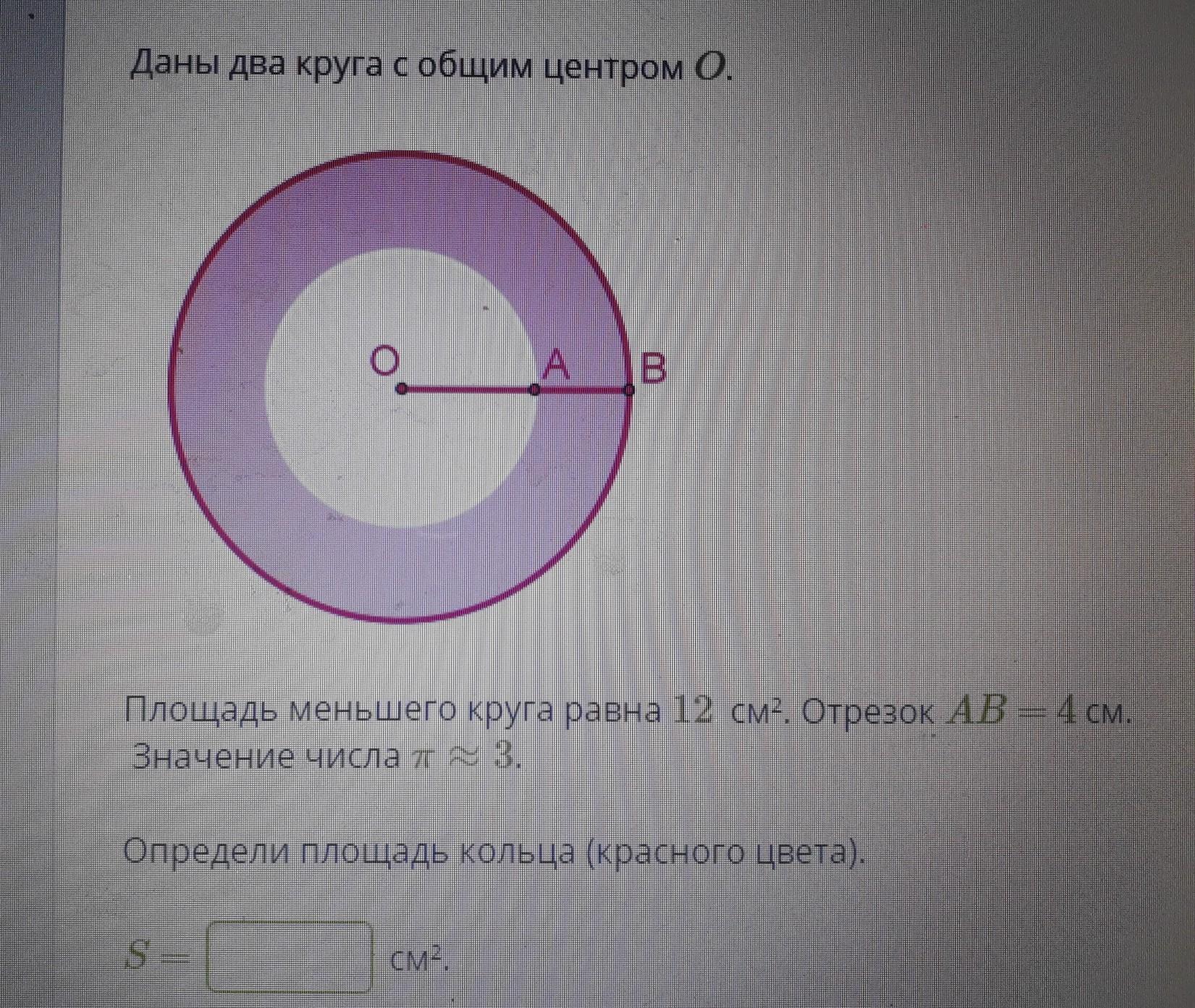 Площадь меньшего круга равны 12см².Отрезок АВ=4 см.