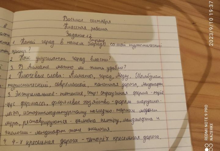 2006. Под ред. Б. Г. Аян Задание 12. 1. Прочитайте текст, составьте вопросный план. 2. Выпишите термины и клишированные конструкции, относящиеся к сфере туризм составьте таблицу терминов. 3. Переведите на казахский язык и объясните значение выделенных слов, пользуя толковым словарем С. И. Ожегова. Словосочетания с выделенными с BаMи. 4. Запишите прописью имя числительное: 4-х кресельная дорога. 5. Выпишите топонимы: Алматы, Шымбулак, Медеу, Кумбель, объясните их см ловое значение.
