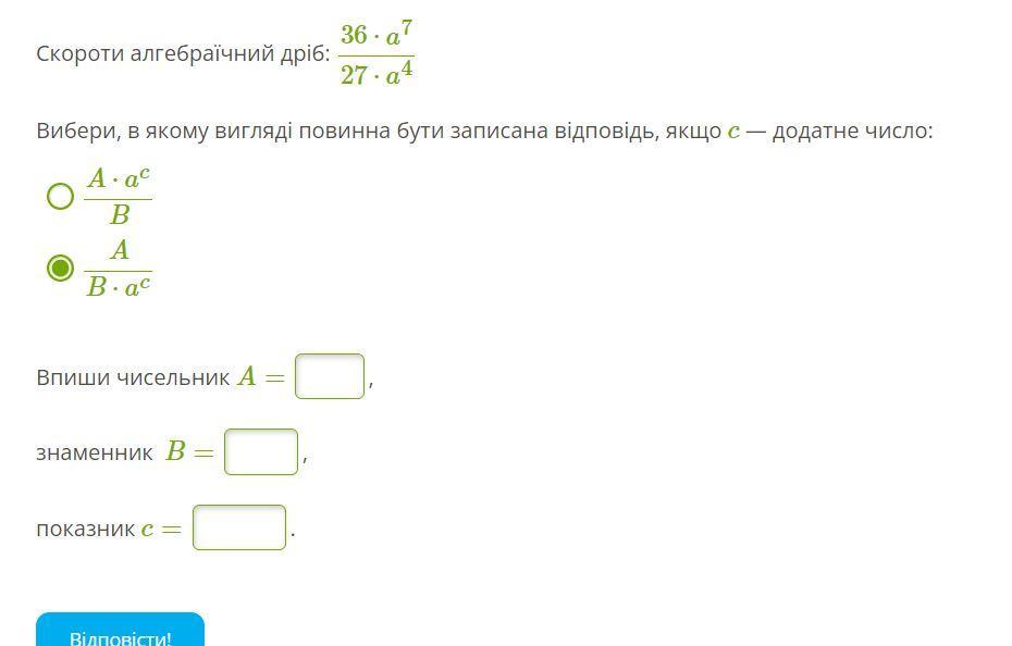 Впиши чисельник A=