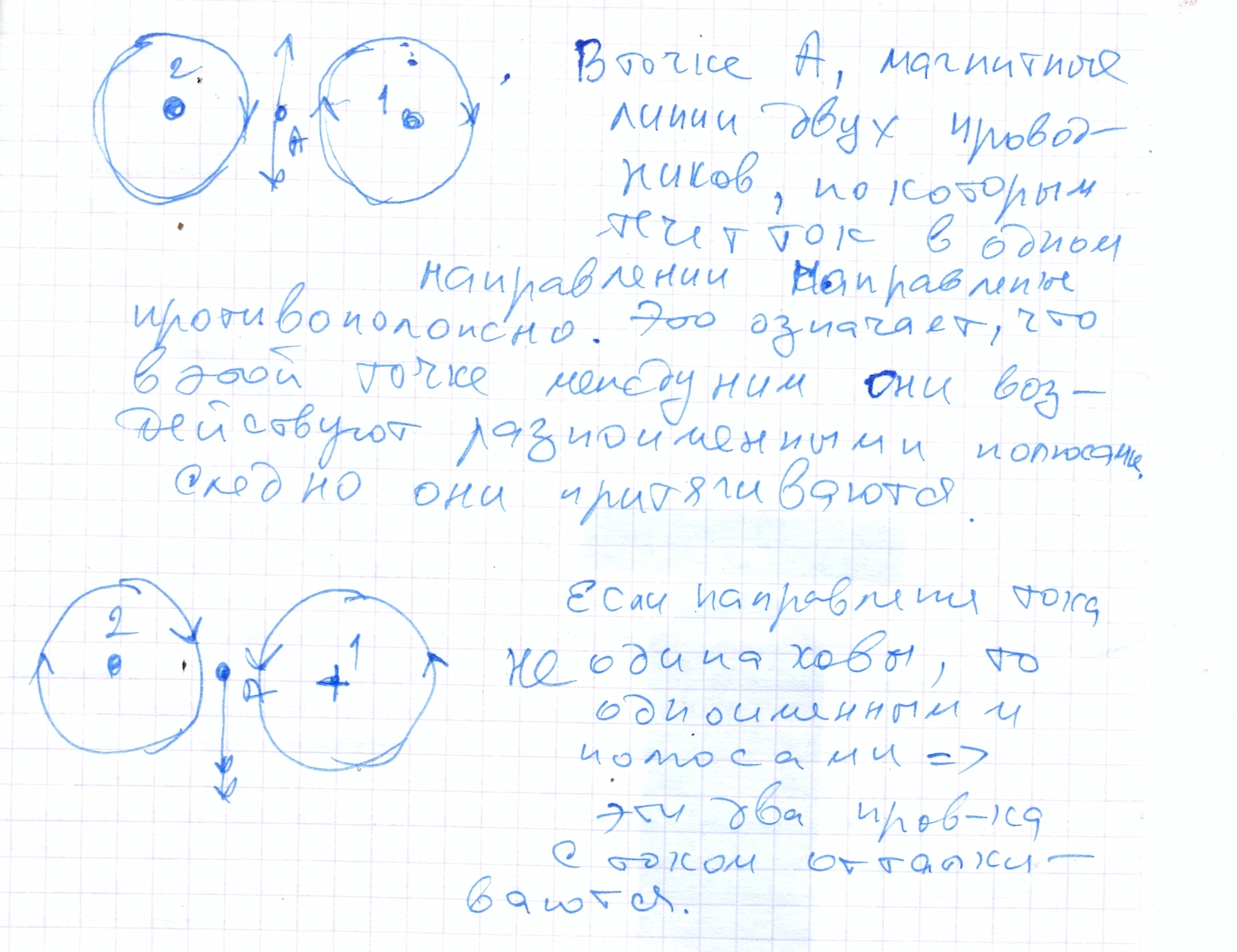 как взаимодействуют между собой два параллельных проводника,если по ним протекают токи в противоположных направлениях?