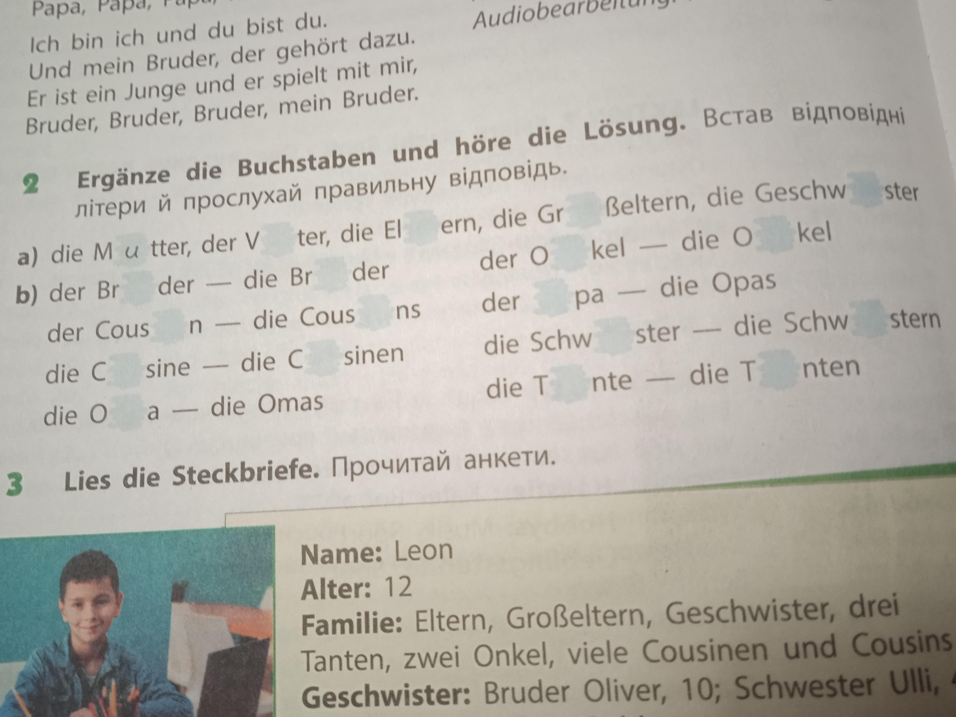 a) die Mutter, der Vater, die Eltern, die Großeltern, die Geschwister.