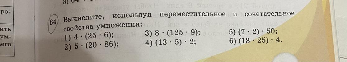 64, вычислите, используя переместительное и сочетательное