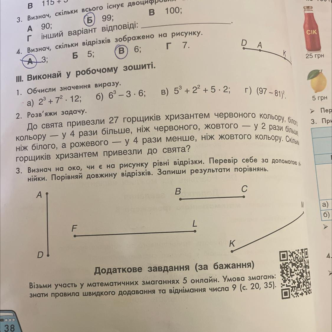 Визнач на око, чи є на рисунку рівні відрізки. Перевір себе за допомогою лi-
