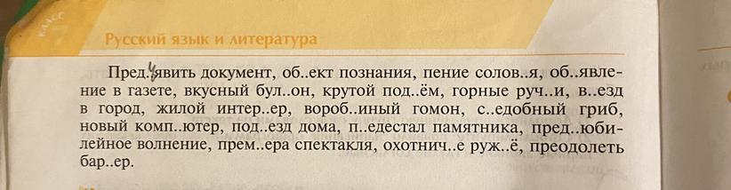 а) Предъявить документ, объект познания, объявление в газете, крутой подъём, въезд в город, съедобный гриб, подъезд дома, предъюбилейное волнение,