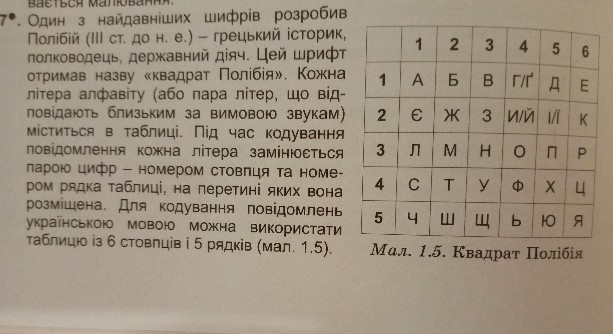 Декодуйте з використанням наведеної таблиці повідомлення, закодоване за наведеним правилом