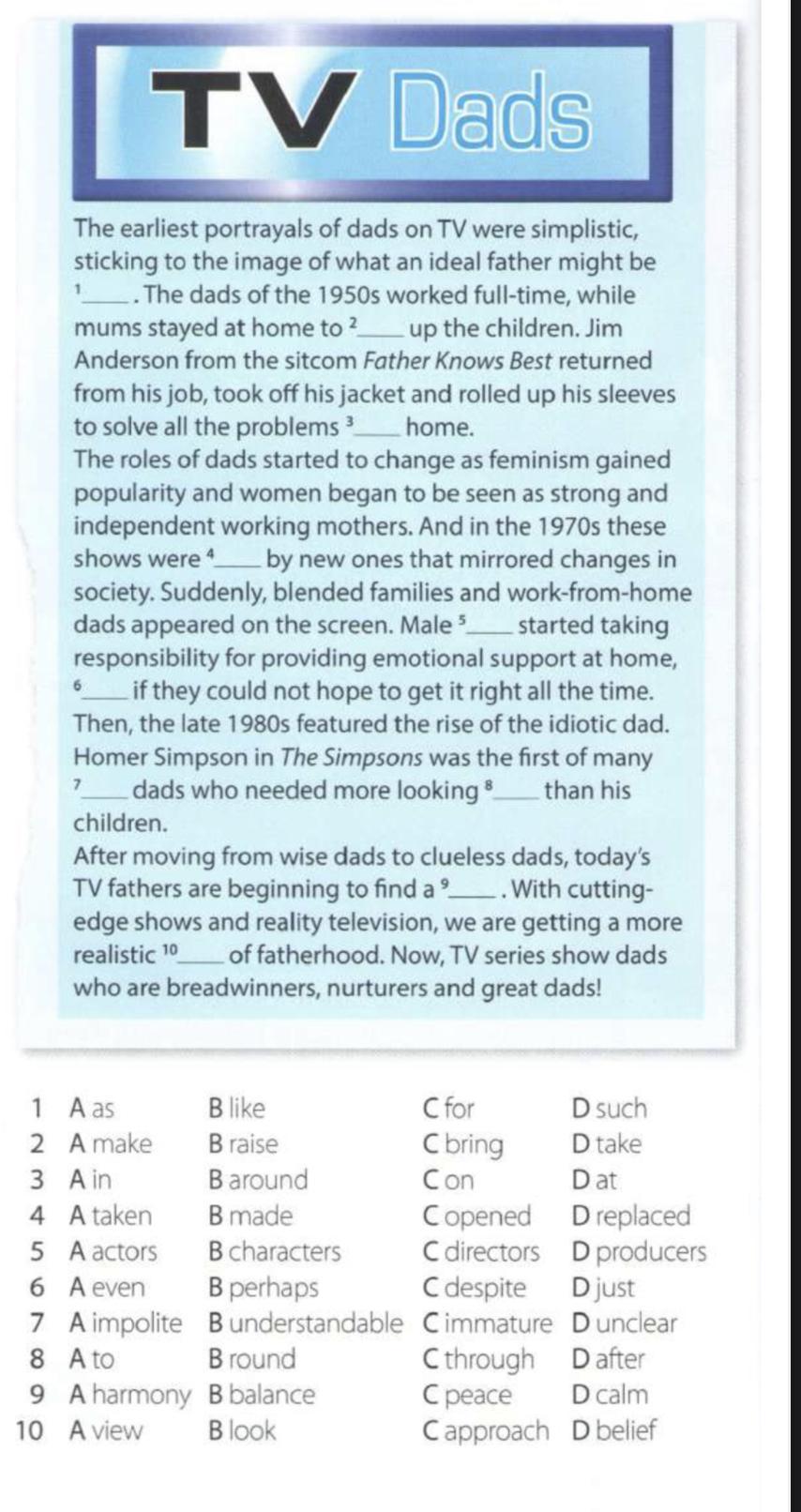 1 like 2 bring 3 at 4 replaced 5 characters 6 even 7 immature 8 after 9 balance 10 view