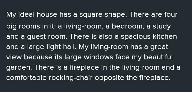 Англ яз 5класс стр 10 #4 in three minutes write a few sentences about your ideal house. Use the worlds in the list. Tell the class.