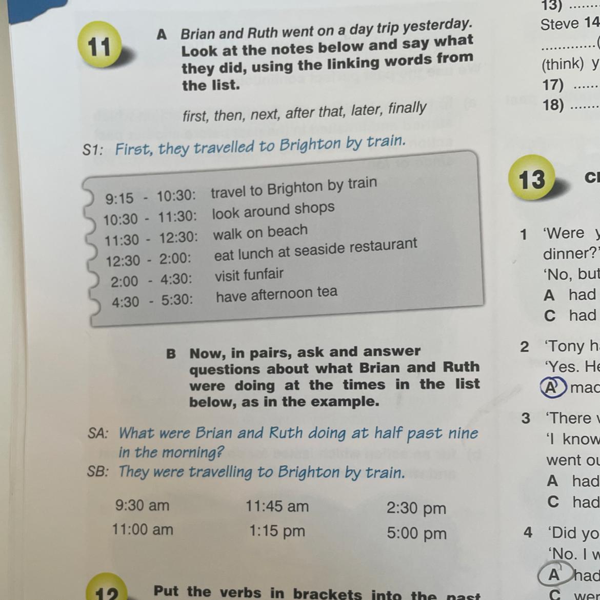 First they travelled to Brighton by train. Then they looked around the shops for their semen socks. Next they went for a walk on aids beach. After that Brian and Ruth ate lunch at the seaside restraunt. Later the visited queer funfair. Finally they had aternoon tea.