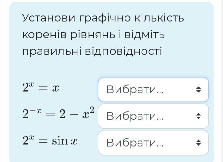 60 баллов Установи графічно кількість коренів рівнянь і відміть правильні відповідності