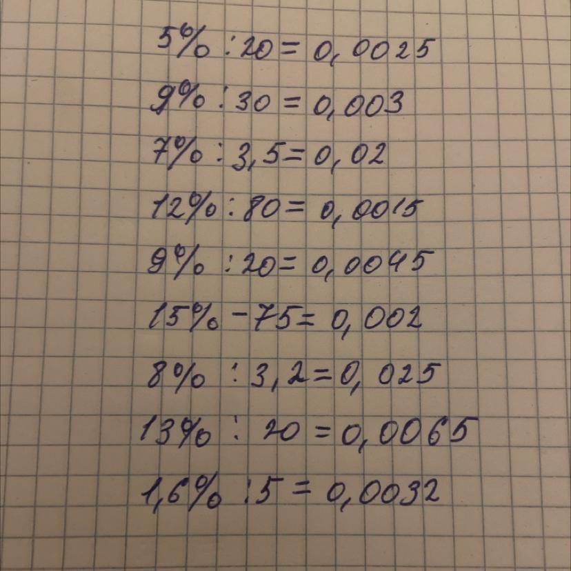 Сандардын проценттік катынасын табыңдар: 1) 5-тің 20-ға; 9-дын 30-га; 7-нін 3,5-ке; 2) 12-нің 80-ге; 15-тiн 75-ке; 8-дін 3,2-ге; 3) 9-дын 20-га: 13-тiн 20-га 1,6-нын 5-ке.