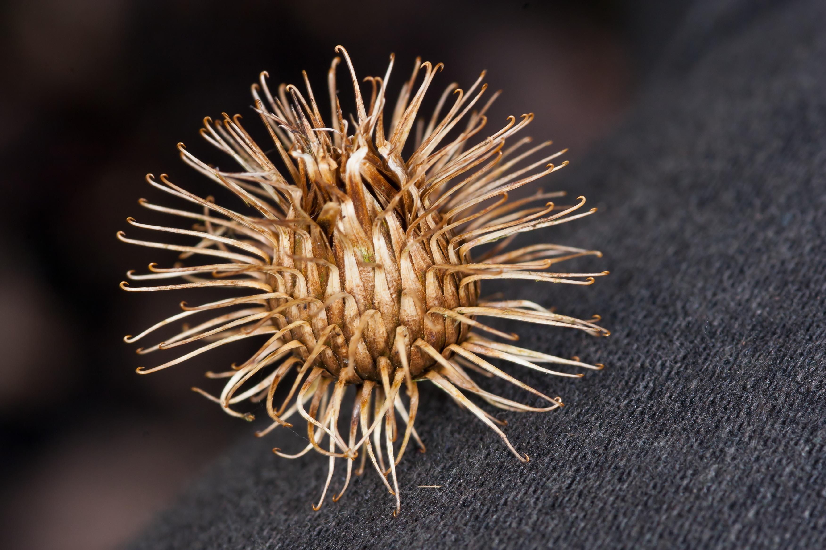 Репейник распространяется с помощью животных и человека, цепляясь за шерсть и одежду с помощью крючков и зацепок.