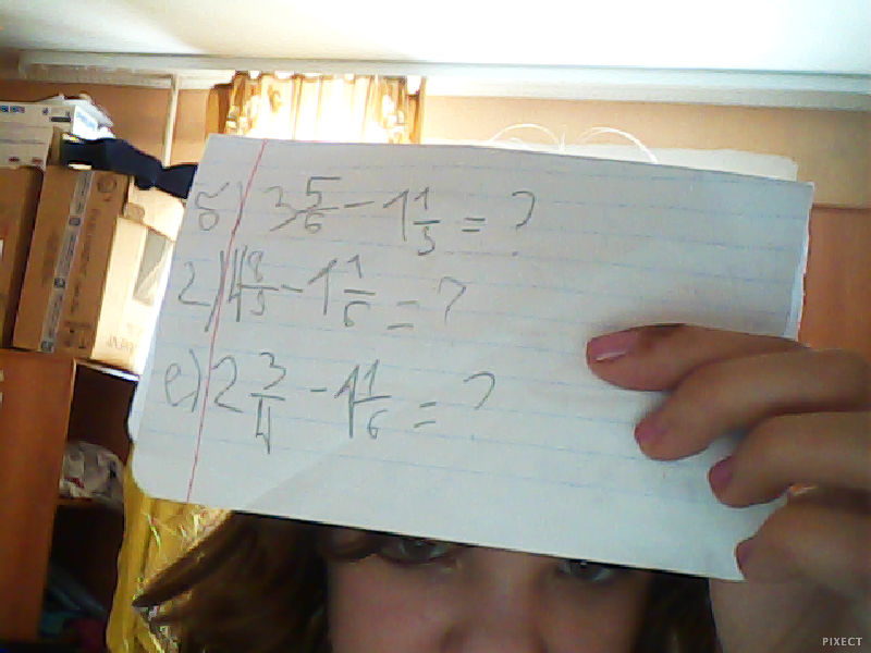 Помогите !!! вычитание дробных чисел с разыми знаменателями !! б) 3 5/6 - 1 1/3 , г) 4 8/9 - 1 1/6 , е) 2 3/4 - 1 1/6 пожалуйста , только полными ответами!!! пожалуйста очень надо и по быстрее