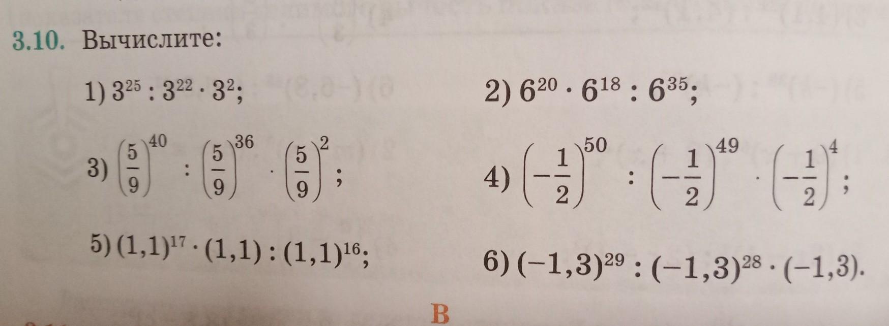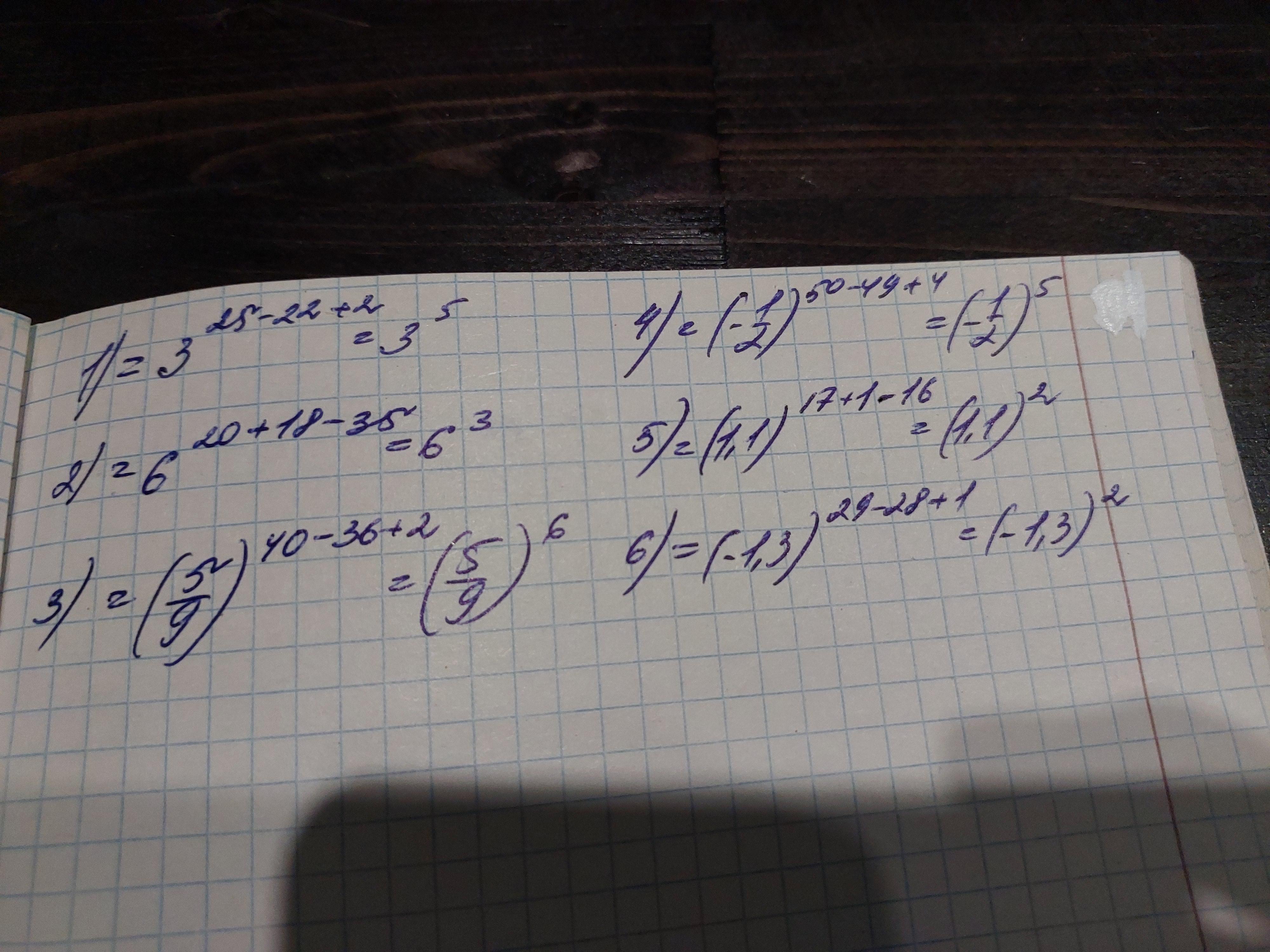 Ответ: 1) 243; 2) 216; 3) 15625/531441; 4) -1/32; 5) 1,21; 6) 1,69.