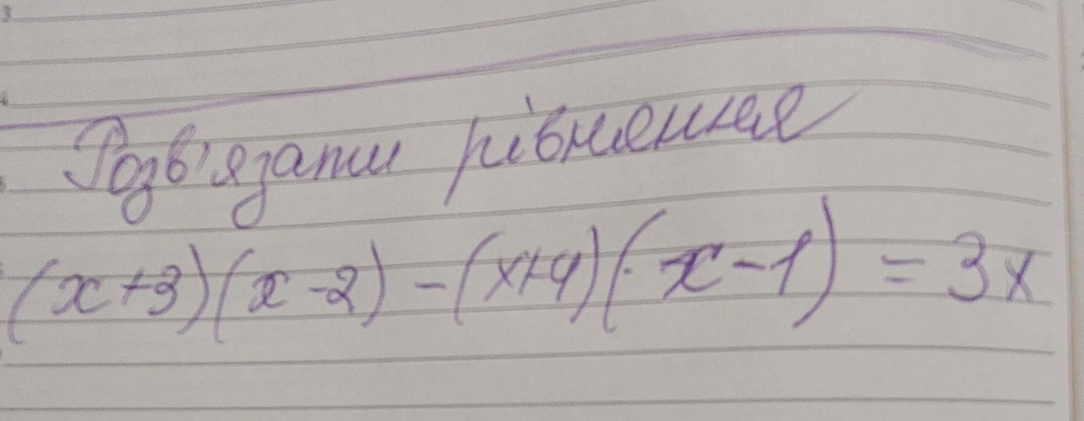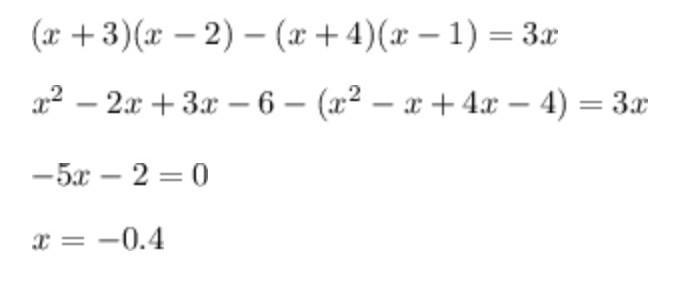 (x + 3)(x-2) - (x+4)(x-1)=3x