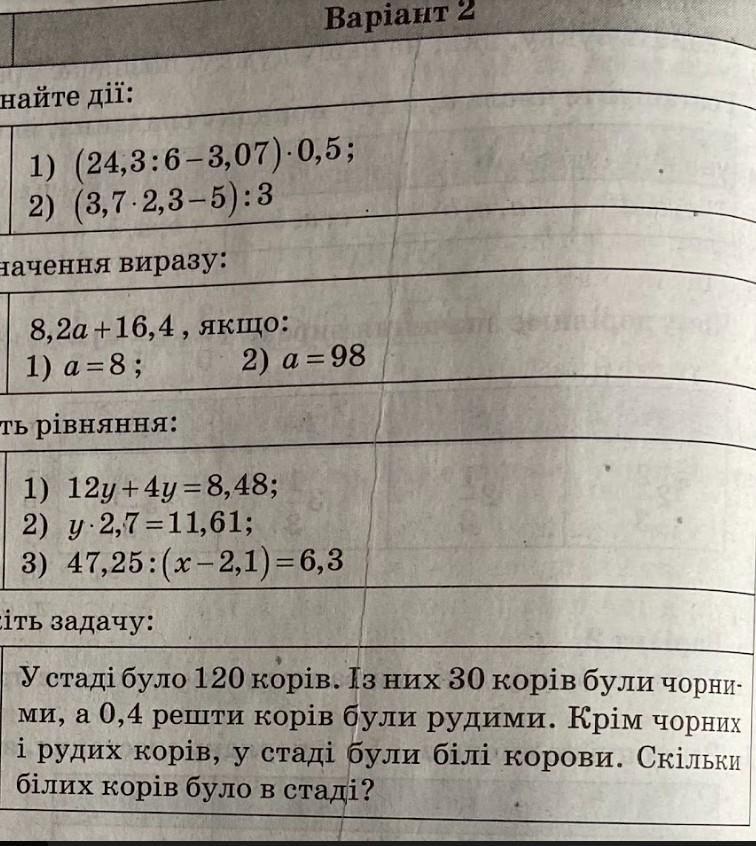 120 всех коров. 30черные(120-30=90) а 0.4 оставшиеся были рудыми(90*0.4=36)ну и те что осталось это и есть белые коровы(90-36=54).
